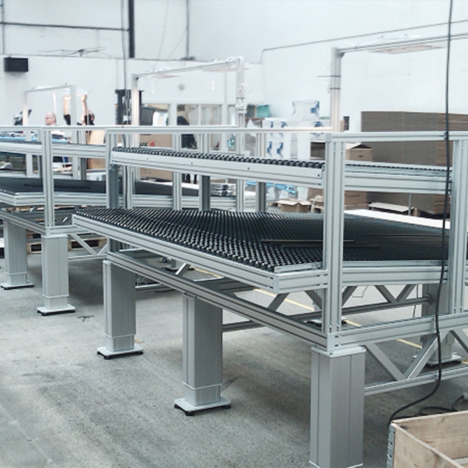 Stabil und leicht: Unsere MayTec Alu-Profile sind kombinierbar, rostfrei und leicht, wodurch der Transport und die Montage gegenüber schweren Stahlkonstruktionen erleichtert wird.